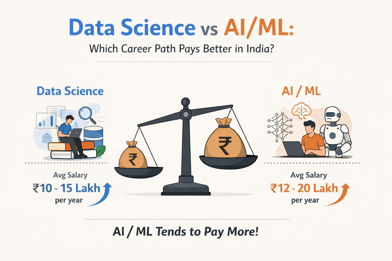 Verdict: AI/ML generally pays 15-25% more across experience levels, but Data Science has more job openings.